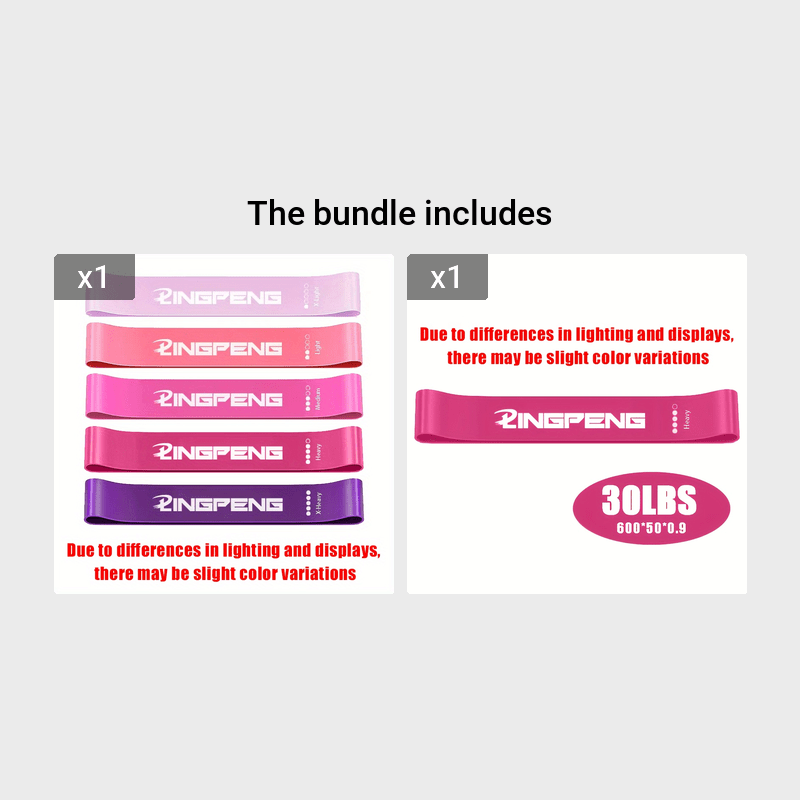 Bands for different stretch levels: Extra Light, Light, Medium, Heavy and Extra Heavy.